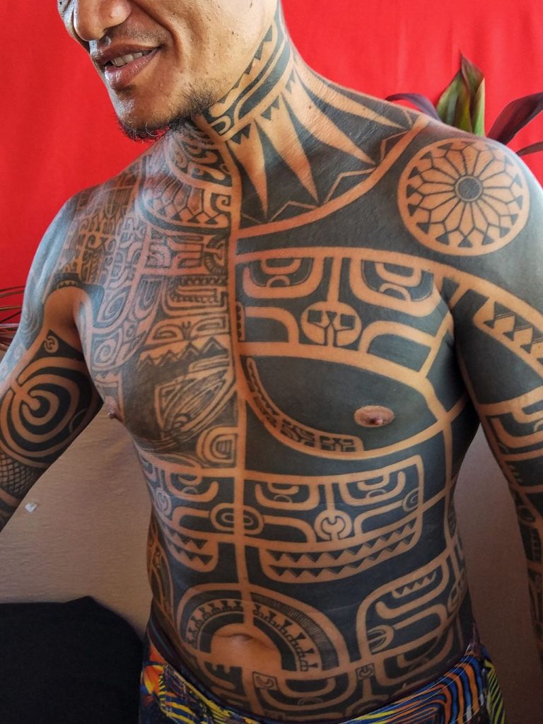 Sunday was cultural day. We first went to the annual Marquesas islands art and craft exhibition. Many artists and sellers come to Tahiti to promote their culture which is different from Tahiti’s. The display of wood and bones carvings were impressive, but less than the tattoos. Tattoo culture is really strong there. If the ancient method is nowadays less used, it is still painful to imagine the long hours they had to endure to get those paintings on their bodies. Each element having a meaning, full stories are hence written on bodies. Even if I am not into tattoos, I was impressed and appreciative of those ones.