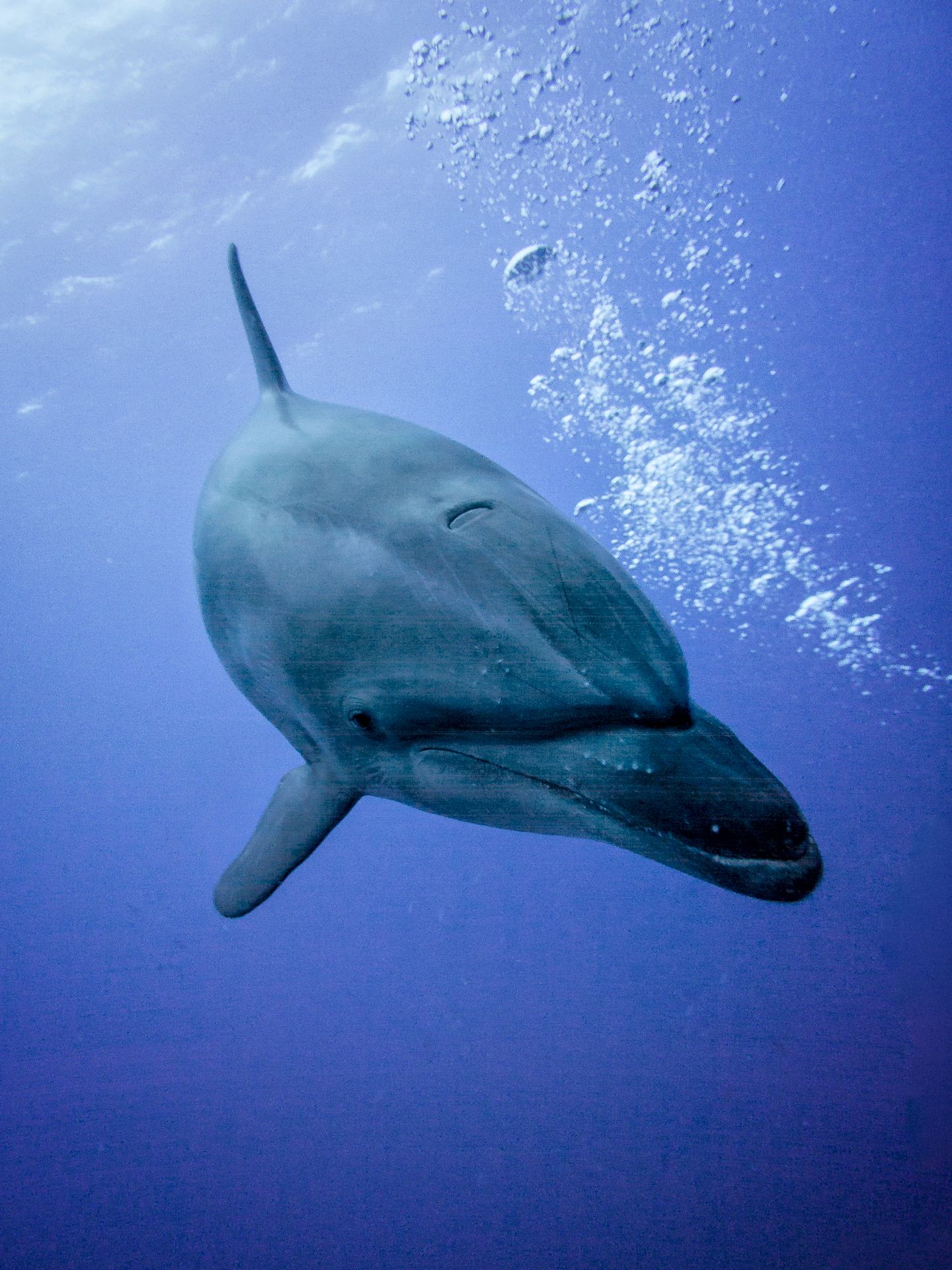 La passe de Tiputa est connue pour sa faune résidente. Suivant les conditions de courant, entrant ou sortant, les plus chanceux peuvent voir et approcher grands dauphins, requins marteaux et tigres. Nos attentes sont très élevées forcément! Et on n’est pas déçu pour cette première plongée sur les extérieurs de la passe. Le courant étant sortant, on est limité au récif en sortie de passe à moins de vouloir être repêché en pleine mer après l’une ou l’autre heure de dérive. Au final ce sont les conditions parfaites pour l’observation des grands dauphins ou tursiops de leur petit nom scientifique. Rangiroa héberge une petite population résidente qui n’hésite pas à s’approcher des plongeurs. Et la chance est avec nous ce jour là, un petit groupe de dauphins vient au contact. Ca ne dure pas longtemps, l’une ou l’autre minute mais l’instant est magique. Avoir le dauphin face à face, pouvoir le caresser quand il demande à l’être sont des moments dont on rêve quand on est plongeur. Cette première plongée à Rangiroa nous a offert tout ça. On est aux anges et on remonte à la surface avec une banane d’enfer. Le reste de la plongée? Je ne m’en rappelle plus, ce moment où je regarde le dauphin dans l’oeil a éclipsé tout le reste!