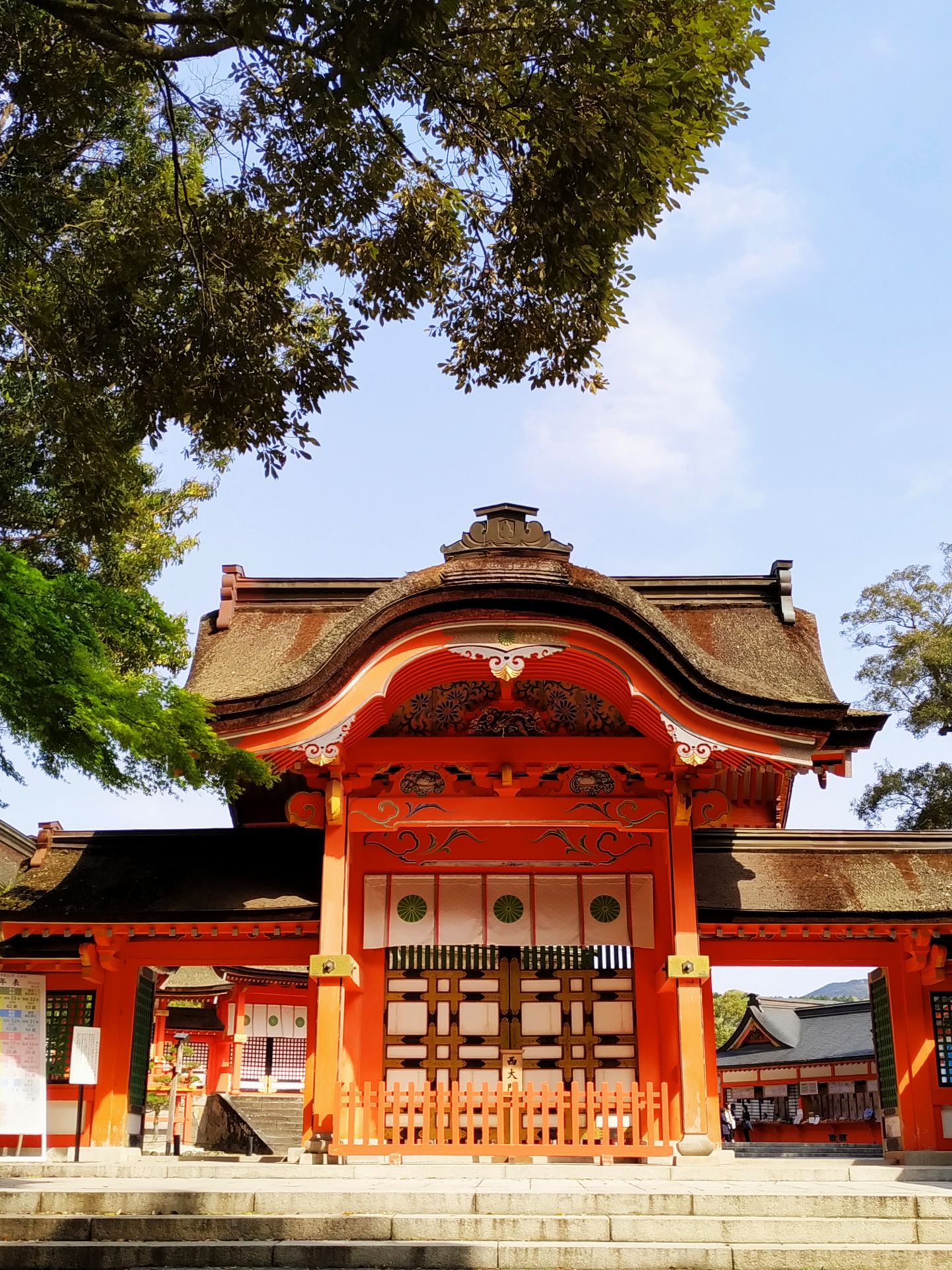 Nous avons ensuite repris notre route en direction du sanctuaire shinto de Usa, dernière étape avant d’arriver à Beppu. Usa est un lieu magnifique, dont les couleurs chatoyantes contrastent avec le vert printanier de la forêt.
