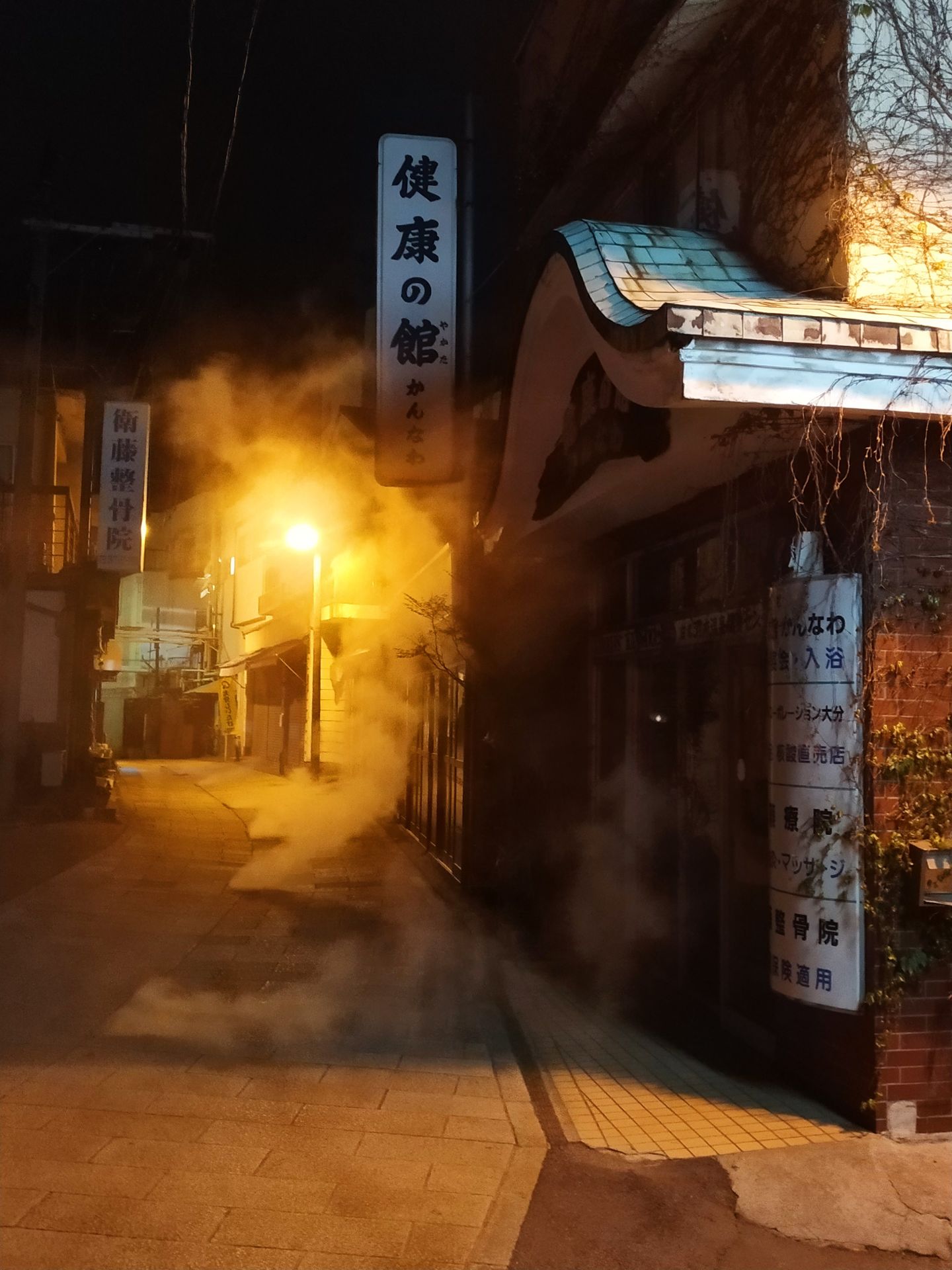 Beppu est une ville côtière qui comporte pas moins de 2,000 onsens. Elle produit plus d’eau de source que les autres villes d’eau du Japon, et comme on est dans une région volcanique, l’eau est chaude, même TRES chaude! Les colonnes de vapeur qui s’élèvent dans toutes les rues se voient de loin.