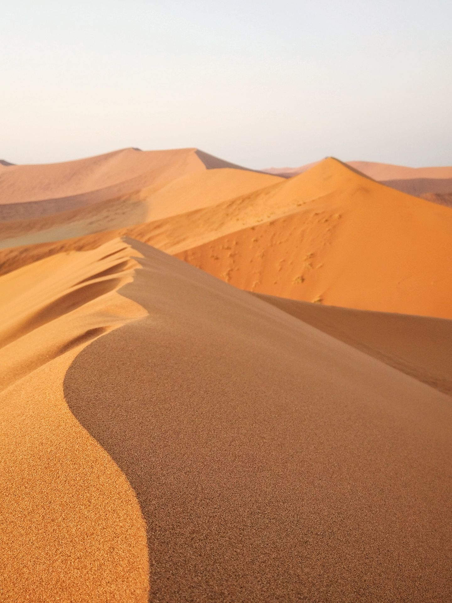 As we had no rush, we stayed there for couple of hours before deciding to slowly go back to the camp to escape the heat. We stopped multiple times on the way to take pictures of the dunes, although the shapes and colours were toned down by the high-up sun. We spent most of the afternoon in the camp in a very relaxed atmostphere between check-out and check-in hours, before going back to enjoy the park at a different time. It was such a different experience indeed!! Almost no one, and with the sun having turned, the shapes and colours of the dunes were the total opposite of the morning, it was another wow moment.