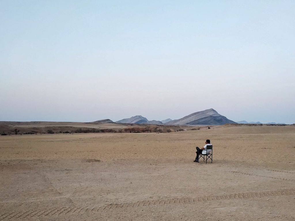 We stayed at a very small camp less than an hour away from the National park, on the way to Walvis Bay, named “Sossus on Foot”. There were only three spots in this amazingly quiet place. Beautiful and serene scenery, a tiny pool to freshen up a bit, that was exactly what we like and what we needed to get ready for the Namibian coast.