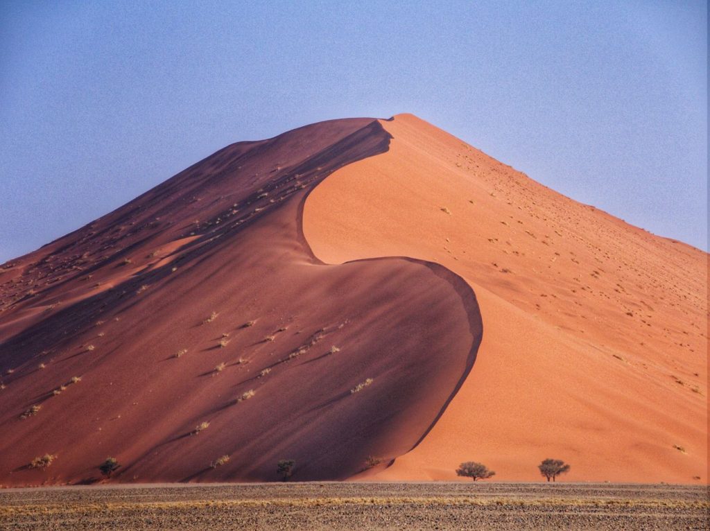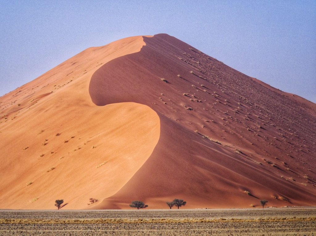 The scenery was breathtaking. Colours were warming smoothly from purples to reds to orange and yellow with the the sun rising. Shades from the dunes created beautiful graphic patterns and we were totally mesmerized. This place is world-famous for a reason, and there is no-brainer as per why it can be crowded. We stayed for a while and decided to move towards Deadvlei and its world-reknown dead trees.