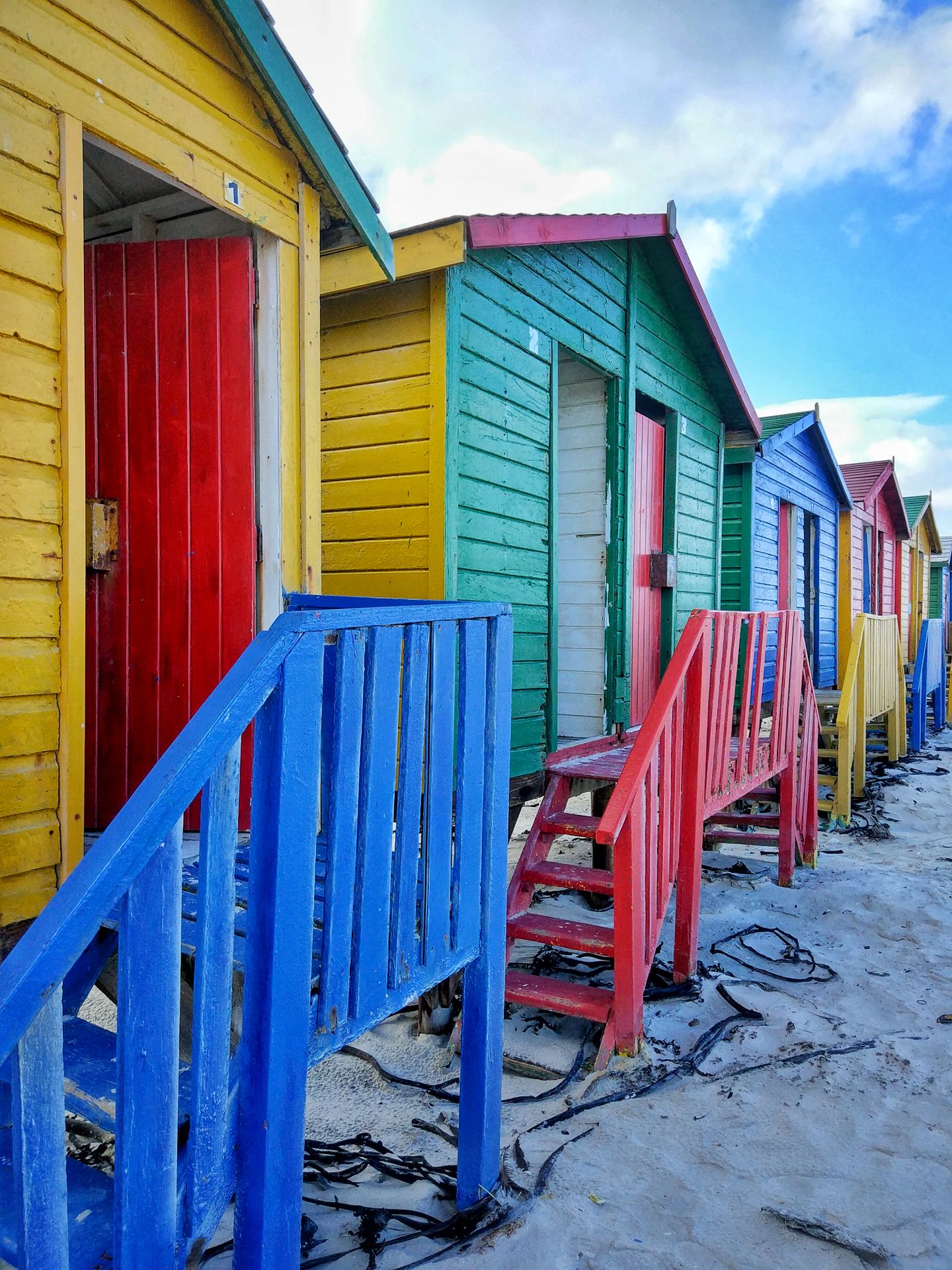 Après quelques jours à explorer Stellenbosch et la région il était temps de lever notre camp et de rejoindre l’aéroport du Cap, notre vol pour Windhoek étant réservé pour le 31 août. Nous avons pris la route et avons fait un petit détour par Muizenberg, station balnéaire juste à l’est du Cap sur False Bay. Plus au sud on trouve la péninsule du Cap mais y étant déjà passés il y a 4 ans nous n’avons pas poussé jusque là. Les petites cabines de plage colorées donne à Muizenberg un air de Brighton au Victoria. Sauf qu’ici toutes sont plus ou moins abandonnées et ne doivent plus servir depuis bien longtemps. Les vagues ni petites ni grosses permettent de s’adonner à la joie du surf si on oublie que False Bay est aussi le terrain de jeu des requins blancs. Avis aux amateurs, il faut garder l’oeil ouvert pour repérer les ailerons au loin!
